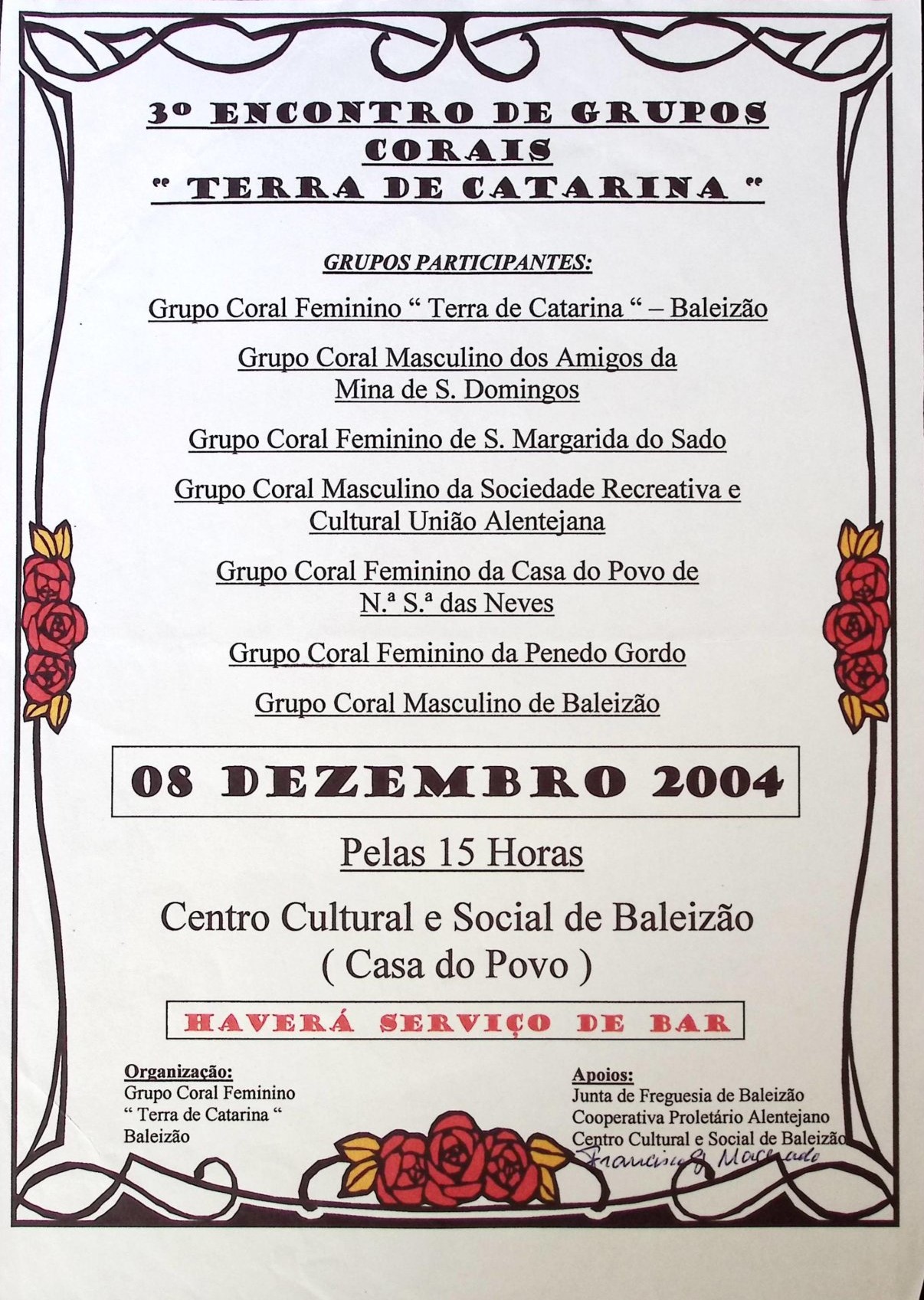 LOCALIZAÇÃO DOC. ORIGINAL Cartaz Promocional do 3º Encontro de Grupos Corais "Terra de Catarina". O documento original consta do Arquivo Documental do Grupo Coral Feminino "Terra de Catarina" de Baleizão.